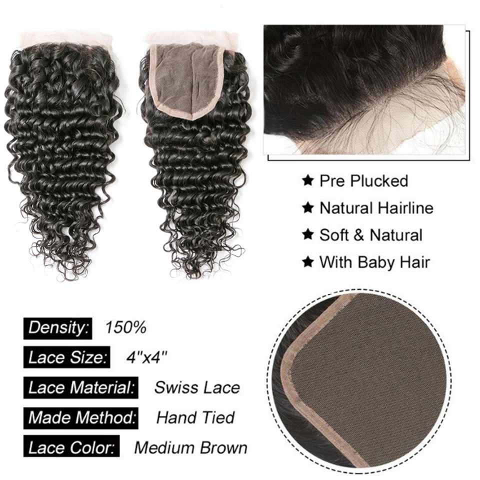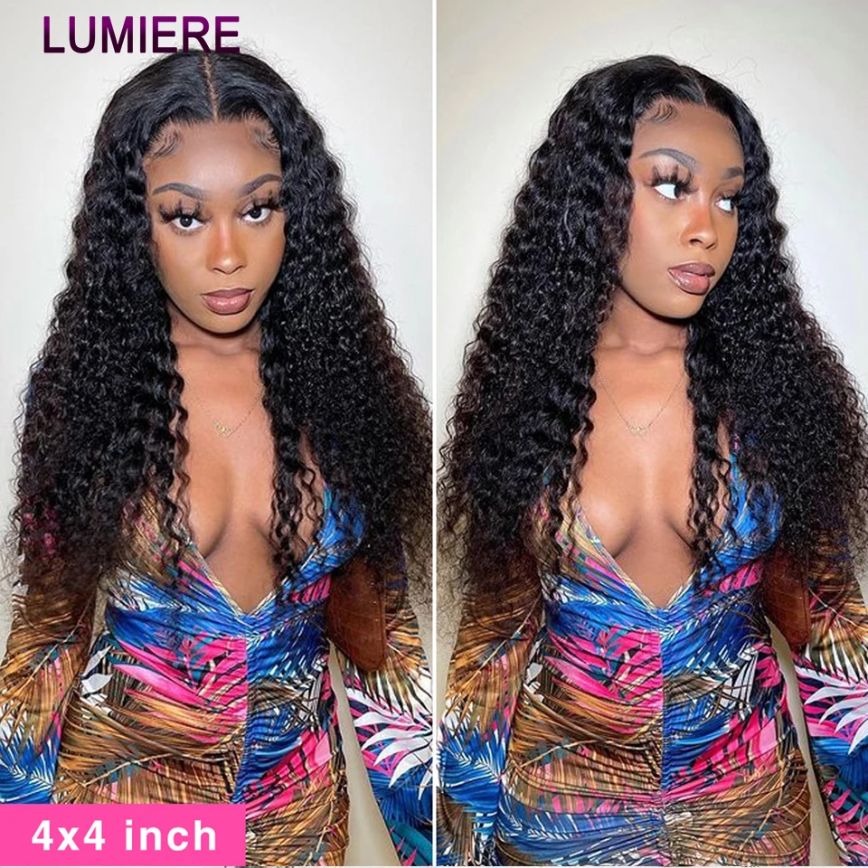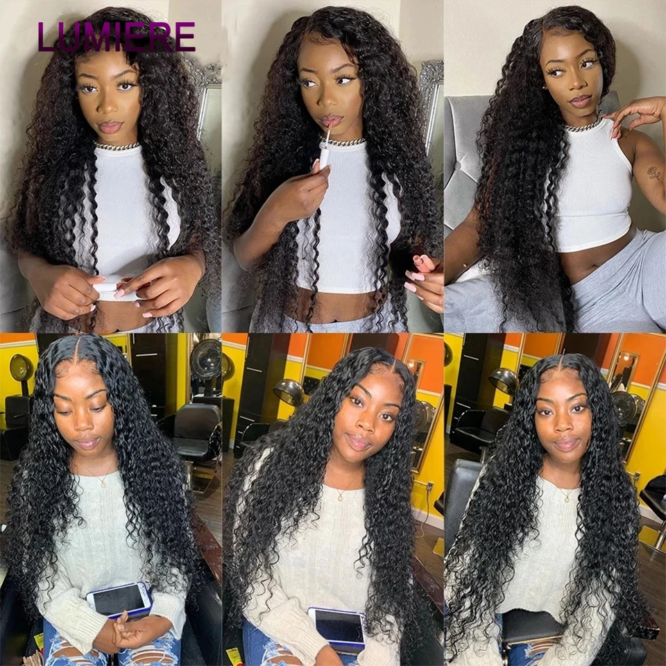 4x4 5x5 6x6 Deep Water Curly Wave HD Transparent Lace Closure Frontal Human Hair Melt Skin Invisible Lace Closure Pre Plucked