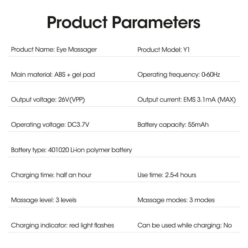 1. Using high-frequency vibration massage, pulse electrotherapy and constant temperature infrared heat compress, 3 levels of adjustable intensity, deep massage of the eyes, strengthen eye movements, and stimulate the skin around the eyes.